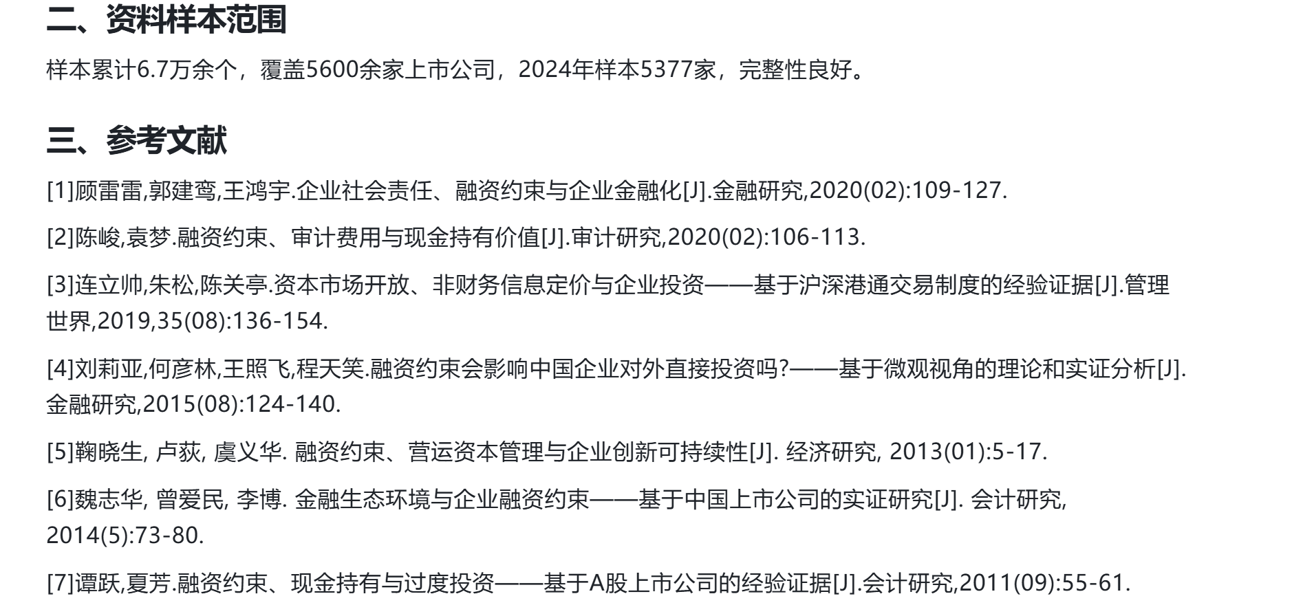 2000-2024年中国上市公司融资约束衡量指标大全