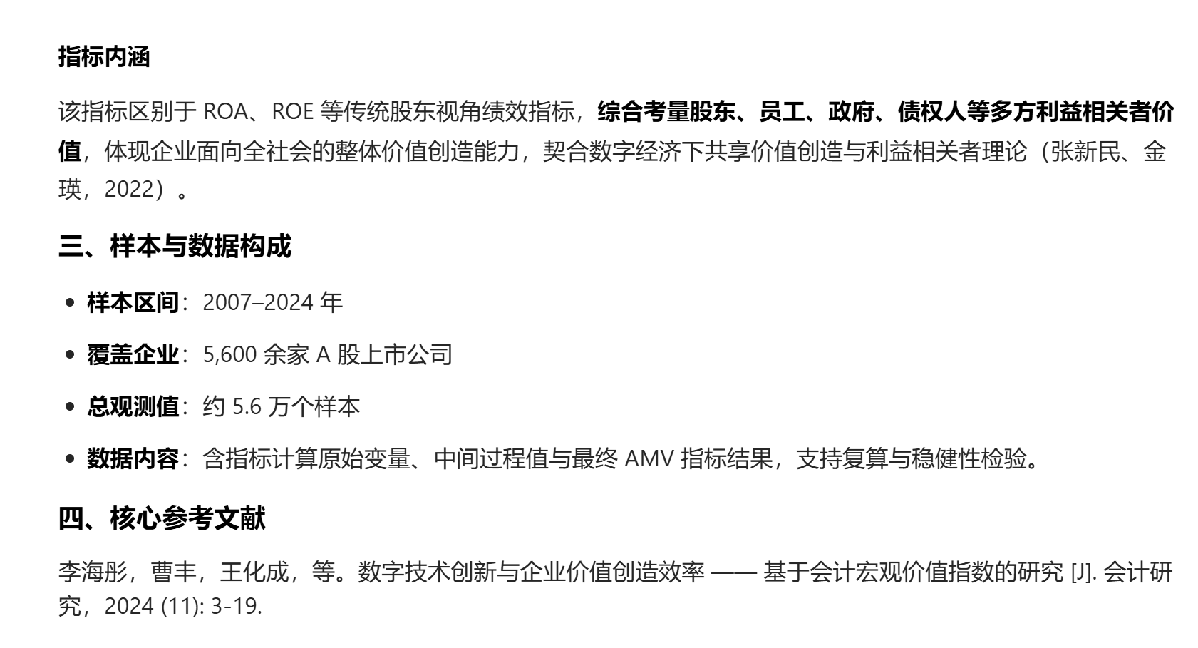2007–2024 年上市公司企业价值创造效率指标说明